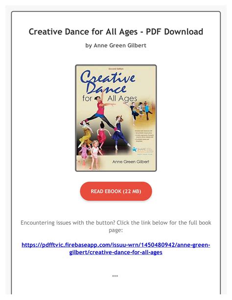 Read Online Creative Dance for All Ages Epub online is a convenient and frugal way to read Creative Dance for All Ages you love right from the comfort of your own home. Yes, there sites where you can get Epub "for free" but the ones listed below are clean from viruses and completely legal to use.